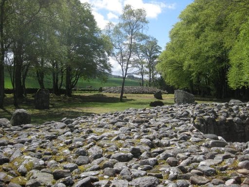 Clava Cairns in Scotland is a remarkable prehistoric site dating back to around 2000 BC. This complex of burial cairns and standing stones is situated
